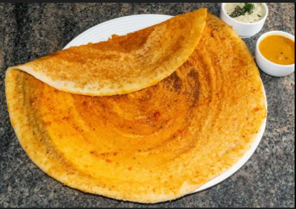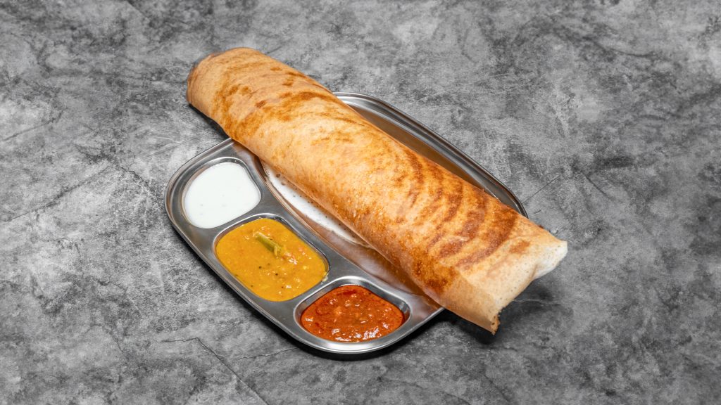 Thin, golden crepes made from fermented rice and lentil batter, freshly prepared on the griddle and served with traditional chutneys and flavorful sambar.